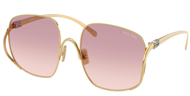 Jeśli marzysz o okularach, które natychmiast przyciągają wzrok – Miu Miu SMU A57 5AK-40S to strzał w dziesiątkę. Delikatna, złota rama i duże, lekko kanciaste szkła w odcieniu różowego ombre sprawiają, że ten model wygląda niczym z paryskich wybiegów mody.