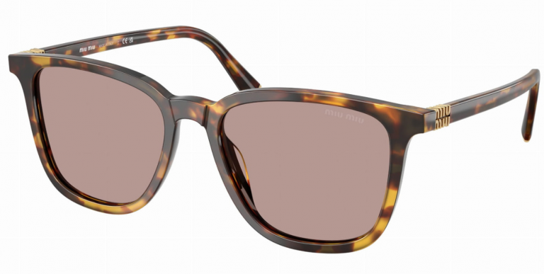 Model Miu Miu SMU B03 14L-20I to współczesna interpretacja klasycznych okularów w kształcie lekko zaokrąglonego kociego oka. Szylkretowa oprawa w ciepłym brązie i beżu, subtelne detale oraz delikatnie przydymione szkła tworzą spójną, bardzo elegancką całość.