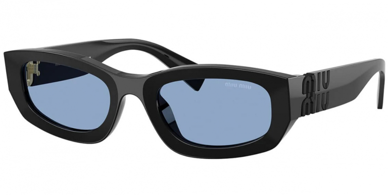 Dla kobiet, które nie boją się mocnych akcentów, marka Miu Miu przygotowała model SMU B04 16K-30U. Czarne, grube oprawki i przydymione niebieskie szkła tworzą efekt nowoczesnej awangardy. Okulary mają zdecydowaną linię i wyrazisty charakter – idealne dla pewnych siebie kobiet, które wiedzą, czego chcą.